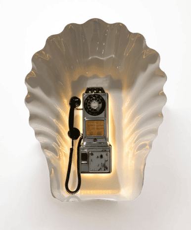 la thérapie, du rituel et de la transformation. La forme en coquillage des cabines téléphoniques évoque les anciens appareils d’écoute – la résonance naturelle des coquillages est depuis longtemps associée au murmure des océans lointains – nous rappelant que la magie et le mystère que nous trouvons dans la technologie sont intrinsèques à la nature elle-même.