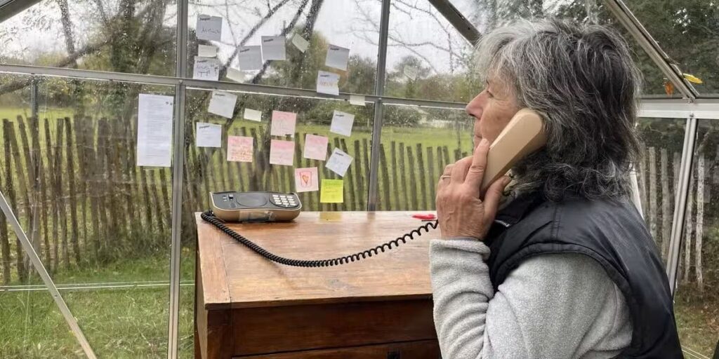 Une ancienne cabine téléphonique a été posée en pleine nature dans un joli coin des Côtes d’Armor pour s’adresser librement à celles et ceux qui nous ont quitté.es